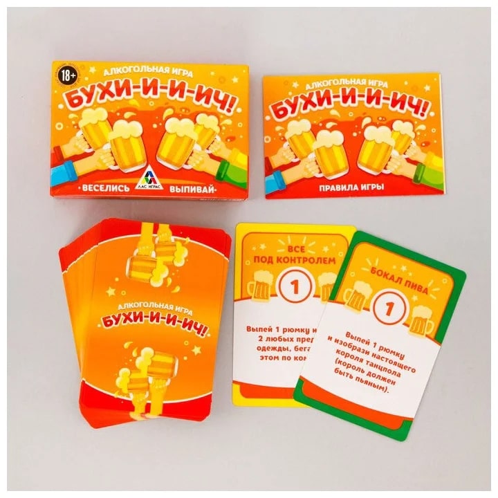 Купить игра для компании "бухи-и-и-ич" 60 карт от 150 руб. с доставкой до пункта выдачи в Карабулаке. Интернет магазин ДекаМаркет. Оплата при получении.