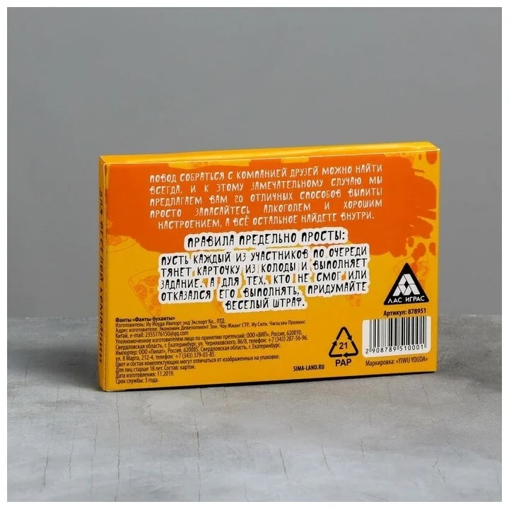 Купить игра для компании "фанты буханты" 20 карт от 100 руб. с доставкой до пункта выдачи в Карабулаке. Интернет магазин ДекаМаркет. Оплата при получении.