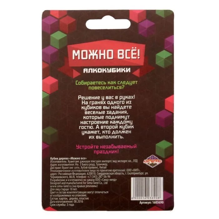 Купить кубик "можно все", алкокубики для принятия решений от 60 руб. с доставкой до пункта выдачи в Карабулаке. Интернет магазин ДекаМаркет. Оплата при получении.